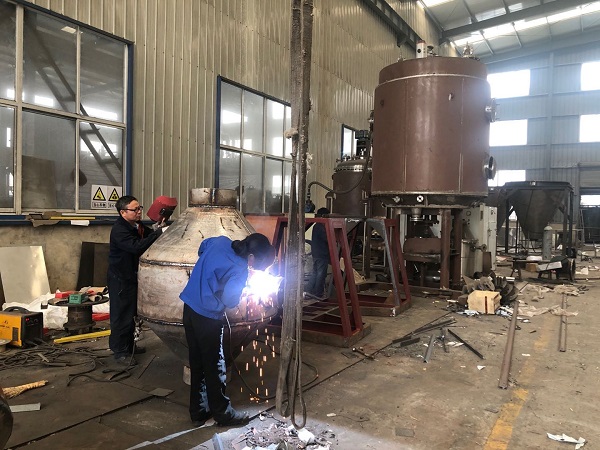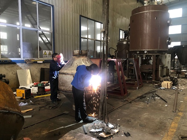常州大名藥化設(shè)備有限公司新一訂單制藥用SZG-1000型雙錐回轉(zhuǎn)真空干燥機(jī),車(chē)間拍攝。