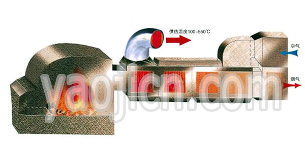 GMF 系列高溫燃煤熱風(fēng)爐全部采用機(jī)械鏈條式爐排燃煤裝置,換熱裝置可采用高溫板式、管式、熱管式等換熱器、具有輸出溫度高,熱值大、熱效率高等優(yōu)點(diǎn),可制備100~450℃的清潔熱風(fēng),設(shè)備各項(xiàng)技術(shù)指標(biāo)達(dá)到國(guó)內(nèi)^。廣泛用于化工、糧食、礦產(chǎn)品、食品、建材等行業(yè)??勺鳛榧訜帷⒏稍?、烘焙、熱定型的理想熱源,可與各種干燥設(shè)備配套使用。